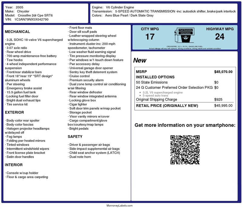 Since our window stickers provide you with pricing information, dealers and private buyers can use this knowledge to set or negotiate the standard price for a used vehicle up for sale.